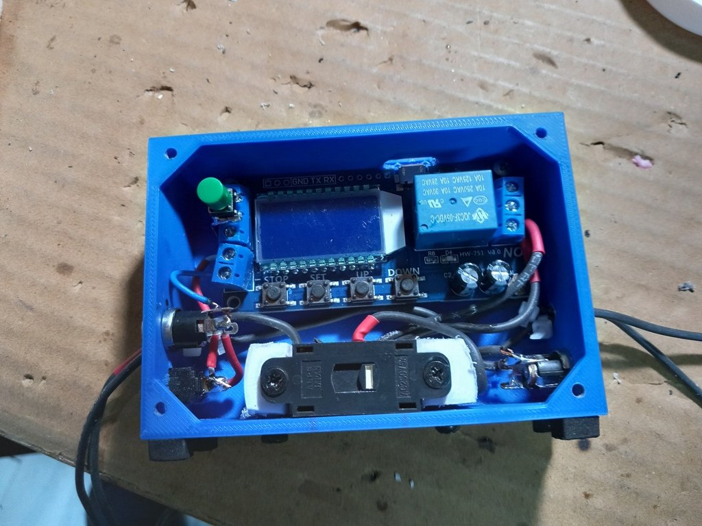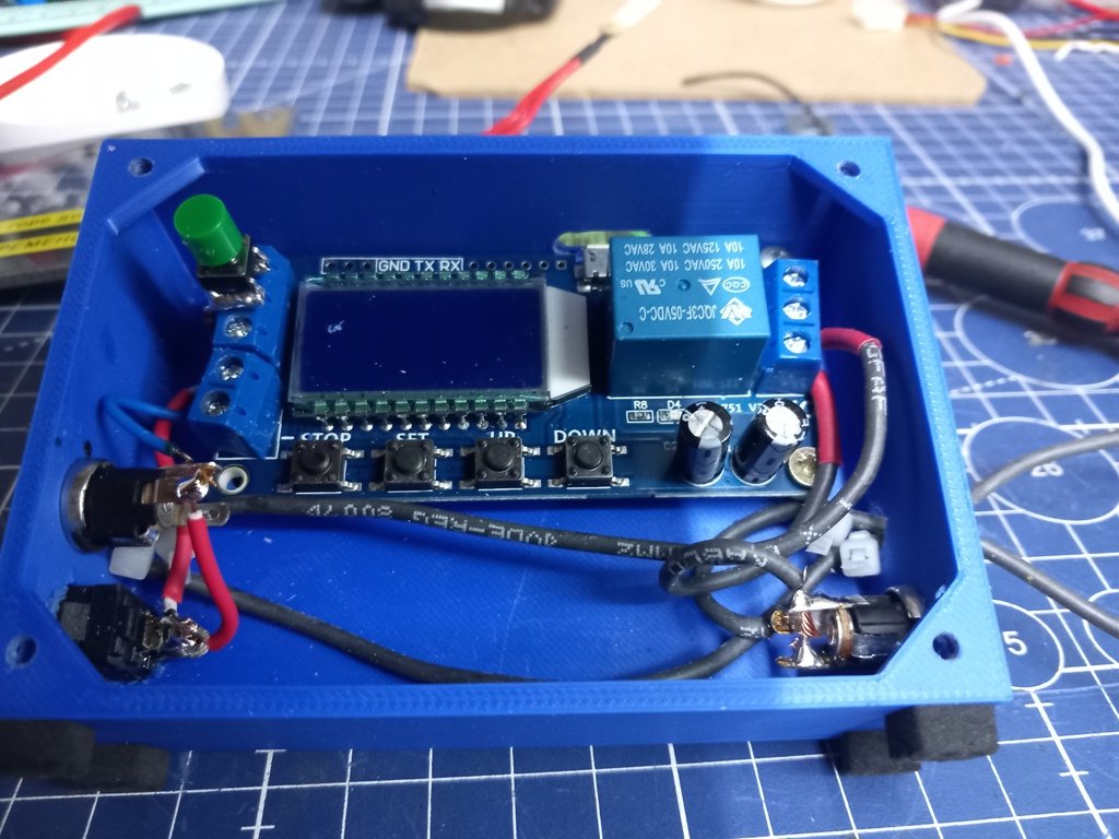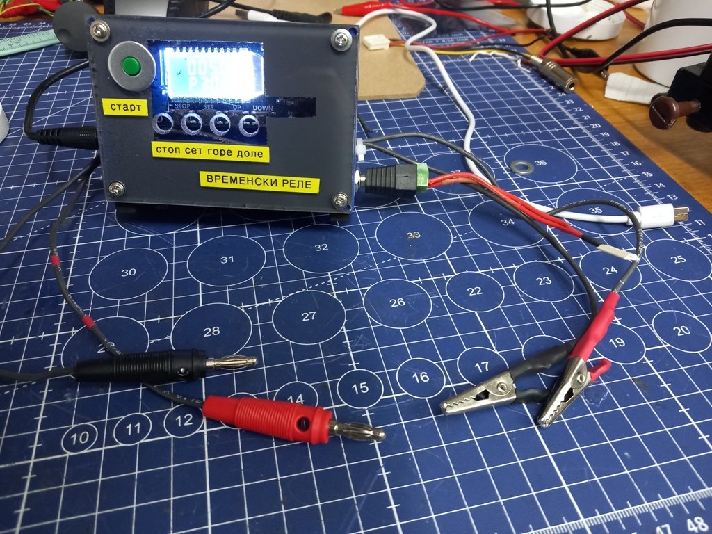 Kako sam nedavno sklopio regulisano napajanje, između ostalog ima svrhu univerzalnog punjača, za potrebe osvežavanja liion baterija koje traje do 1 minut pri jačoj struji punjenja, upakovao sam podešavajući vremenski rele da mi olakša rad te da vodi računa o podešenom vremenu.Koristio sam modul sa LCD displejem (može i drugi) sa dva reda prikaza koji košta oko 300 dinara.Smestio sam ga u kutiju koju je sin odradio. Ugrađen je i prekidač za prekid napajanja kao i DC konektor za spoljni termički osigurač 250V 5A 65 stepeni koji nije obavezan ali sam ga predvideo kao dodatnu sigurnost (kod procesa punjenja liion baterija). Sve ovo sklopljeno ima i univerzalnu primenu jer je sklop sam za sebe.Link za modul