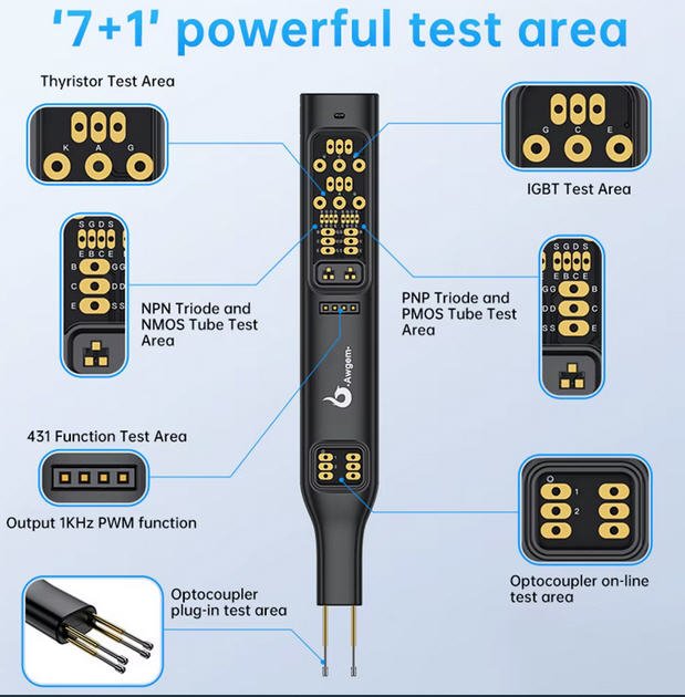 Evo jednog alata kojeg treba imati.Juče mi je stigao optokapler tester koji pored optokaplera testira i tranzistore.Ispravnost komponente detektuje se preko jedne zelene led diode.Testirao sam IGBT tranzistor, triak i optokapler na ploči i to radi.Ovo je opcija sa ugrađenom liion baterijom i pre upotrebe treba napuniti bateriju.Za male pare dobija se koristan instrument