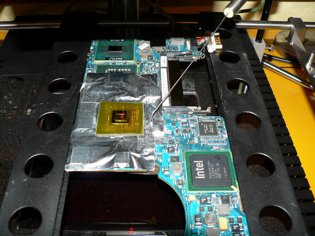 To su temperature na samoj povrsini stakla,s tim da ploca koja se radi stoji na X-Y tabli na 4cm od donjeg grejaca.Sto se tice X-Boxa i PS3 njih sam pre dosta radio,hvala bogu vise ih neradim,oni su jako teski za rad bas zbog tog uvijanja ploce koja se toliko iskrivi da malte ne krajevi cipa legnu na plocu.Ja sam imao jednu vrstu konstrukcije koja je na sebi imala navoje koje sam srafio kroz postojece rupe na ploci i tako je fiksirao.Nazalost to sam poklonijo jednom kolegi pa nemam slike ali otprilike je bilo kao na ovoj stanici samo sa vise sina.