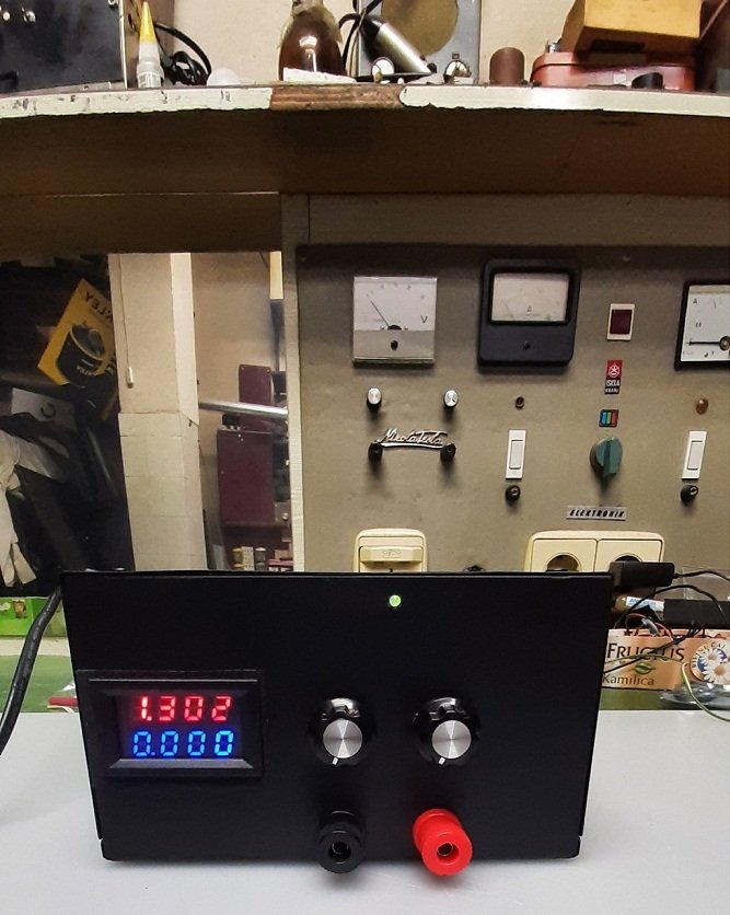 U kutiju od starog ispravljača smjestio sam oba modula. Trimer potenciometre koji su bili na modulu, skinuo sam i umjesto njih ugradio klasične potenciometre 10K linearne. Ima da se naruče i višeobrtni potenciometri, dosta jeftini, ali sam smatrao da nema potrebe za njima.