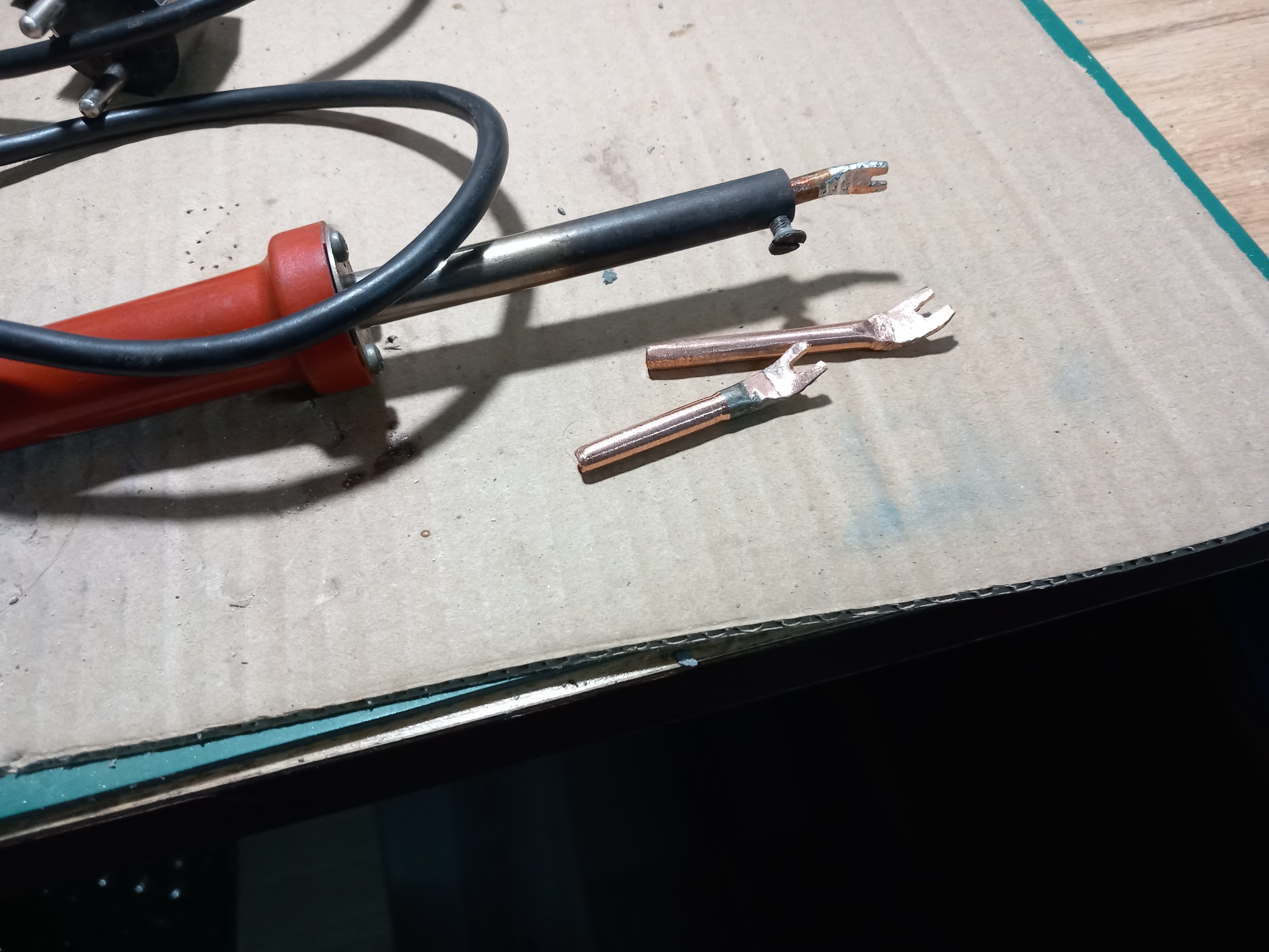 Kako sam imao potrebu da skinem jedan smd kondenzator i otpornik a bili su na dosta nepristupačnom mestu tada sam se setio da sam na jutjubu video rešenje za tako nešto.Iskristio sa iskrinu štapnu lemilicu od 30W u koju staju vrhovi od 5mm debljine te sam u tu svrhu na bakarnoj žici 0d 5mm iskovao iliti stanjio vhove čekićem ba bih urezao kanal širine smd komponente.Vrh je malo savijen i kalajisan.I to dobro radi.