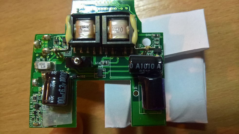 Nadjoh kvar t.j. "izbacio je MU092X - Fuse, Thermal Cutoff" na desnom trafou (zaliven pa ga nisam odmah primetio) što će reći i da je taj sa oznakom 07k pregoreo. Termalni osigurač nije problem ali trafo jeste jer ništa o njemu neznam tako da ću najverovatnije odustati.