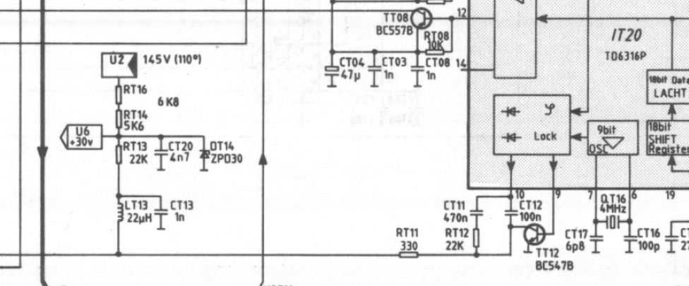 Imam napon na zenerici i on je 33V ali nemam ništa, ili 0,nešto V na liniji koja izlazi iz U6136. Vidjeću da provjerim tranzistore i zamjenim kristal, za svaki slučaj, osciloskop mi nije trenutno operativan, a nije problem što U61... nije skup nego što možda neću moći da ga nađem ovde...Stolle je napisao:Nemaš varikap napon ili je stalno 30V? U6316 nije uopšte skup, možeš da probaš. Ali i ove komponente oko njega.