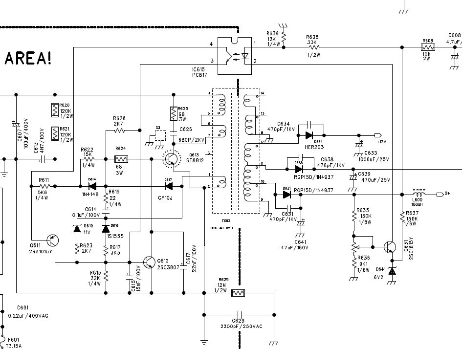 Na samog TV je stojao DA3807 ja sam stavio C3807 a sad mi je sumliv otpornik R620 dali je 120K il je 12K posto nemam semu stavio sam 120K a drugi tranzistori sam zamenio kao i optokapler.