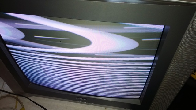 Ovo liči i na drugi sistem SECAM ili NTSC ili problem u obradi hor. sinhro impulsa.