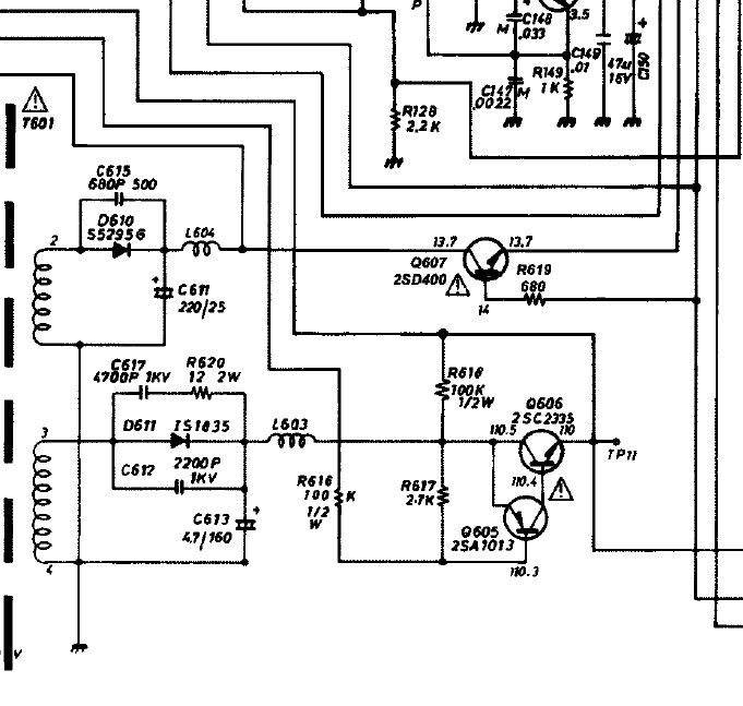 Potrebna mi je shema navedenog tv-a jer nemogu da vidim oznake tranzistora,kondenzatora i otpornika u dijelu pobude vn tranzistora jer su toliko crni da se nevide oznake.(Na sasiji vidim da se radi o Q304 Q605 i Q606 zatim R257 R413 i R307 i kondenatori C310 C613 koji su kao ugljenisani.)Prvo bih otklonio eventualni kvar u mrezi a zatim i ostalo.Medjutim nemam sheme navedenog tv pa vas molim ako je moguce istu dobiti od vas.Hvala.