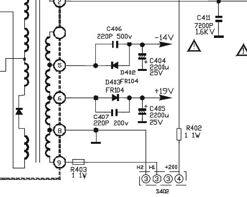 Zameni te elemente od trafoa do elka C405, a mozda je i trafo u prekidu ili nevalja.