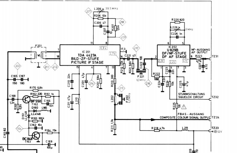 Treba provjeriti i elektrolite u MF stepenu oko kola TDA4427. Ima ih dva komada i najbolje zamijeniti oba.
