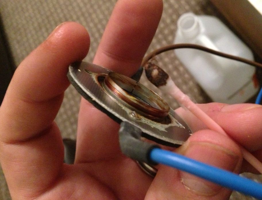 Kalem(spulna) je bio bukvalno slepljen sa magnetom,prvo sam sa strane kapao alkohol da bih malo raskvasio taj "ferofluid"da bi mogao da ih izvadim iz magneta :?