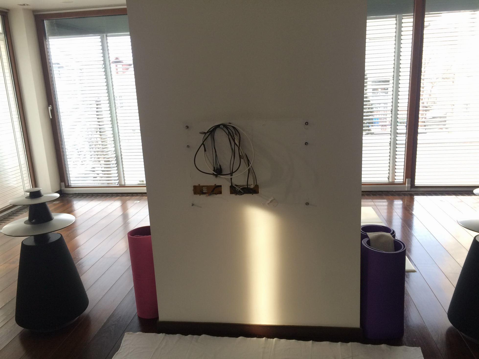Na zidu je ugrađeno zidno grejanje i bilo je teško pronaći mesta za rupe za tiplove.