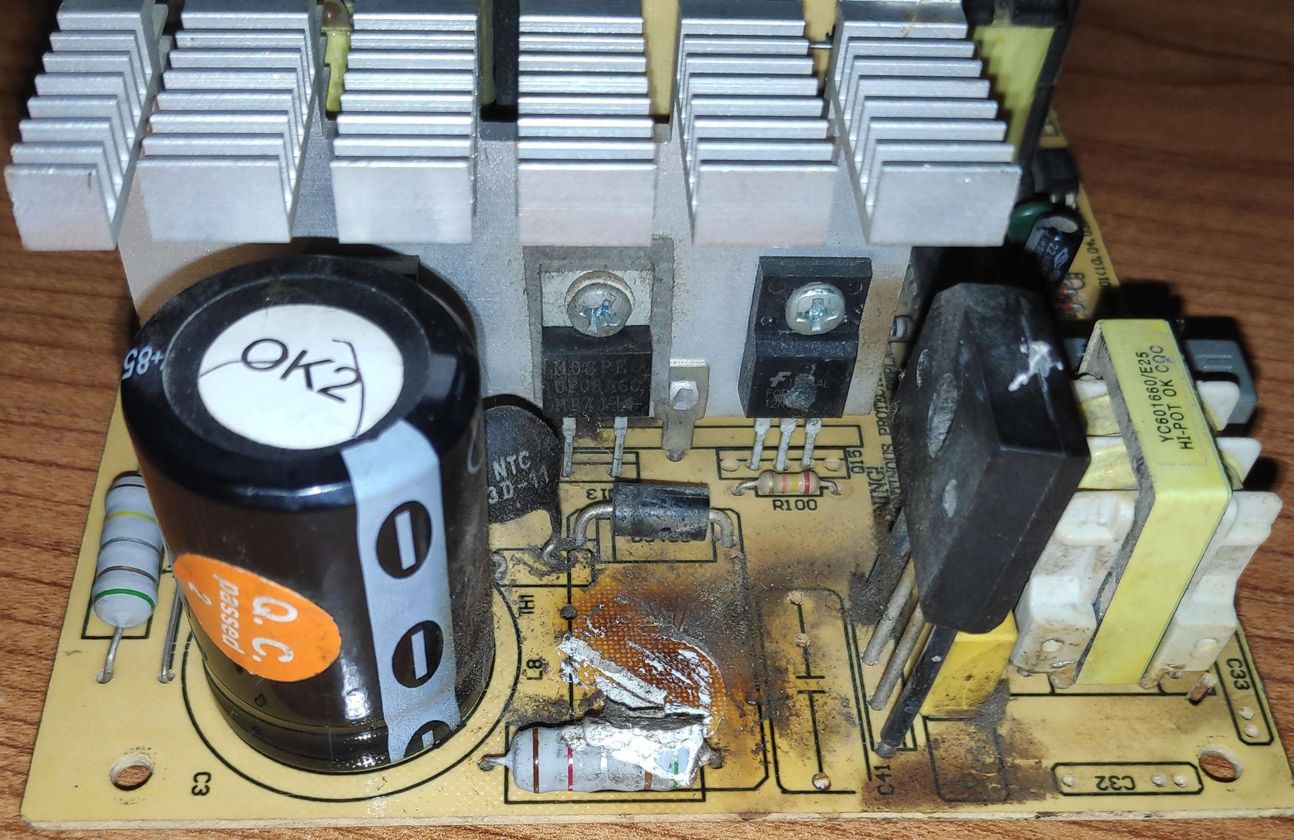 Ovako stavio sam zavojnicu 0.73mH, zamenio osigurač, kondenzator, i umesto onog 12n60C mosfeta stavio SVF 18N50F. Probao sam napajanje preko sijalice i napajanje krene i naponi su dobri nekoliko trenutaka, a onda počinju da padaju i upali se