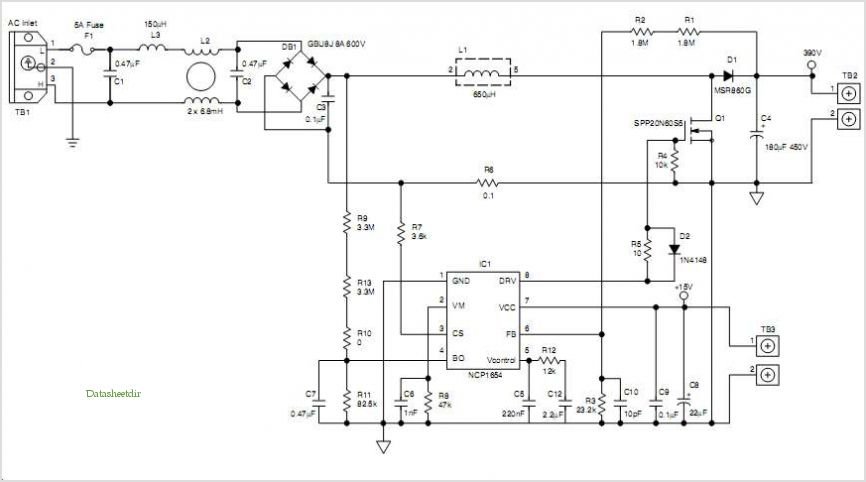 To PFC kolo, indukivnost te zavojnice je bitna za rad tranzistora, a mrežni elko treba da je za 450V.