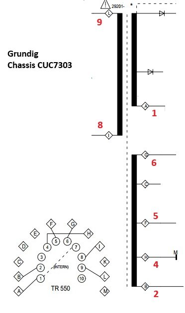 U aparat Grundig T 51-071 je ugrađena šasija CUC7303. Po katalogu firme hrdiemen, transformator koji je ugrađivan u ove aparate nosi njihovu oznaku HR6572. Taj transformator ima 12 pinova i njegovu šemu je postavio kolega.