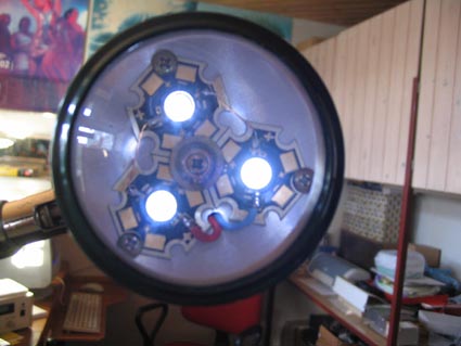 Nažalost, Led diode, koje se mogu kupiti kod nas, kao i gotove lampe (zamena za halogene), nisu dobrog kvaliteta. Previše se greju, i od sopstvene toplote pregorevaju. Ja sam stavio ventilator u lampu, i to se više ne događa. Ima ih 90 komada, i nisam uspeo da dobijem dovoljnu širinu osvetljenosti. Postoje LED 2,5W, sa uglom osvetljavanja 120 i više stepeni, ali su one prilično skupe. U drugom slučaju sam imao problem preširoke osvetljenosti, te sam stavio dodatno sočivo.