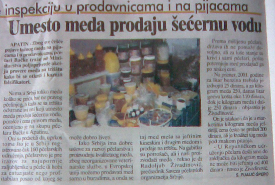 upravo zbog toga sam postavio i pitanje za med..sve sto je laznjak, falsifikat, kao i kineska roba polako, polako nestace iz nasih zivota..ako se neko odluci da radi kako treba, uspeh je zagarantovan ali na duge staze..posteno niko nije zaradio za tri meseca ili za godinu dana..ali zato onaj prvi izaci ce iz biznisa na mala vrata..veruj mi..chellawy je napisao:evo da ne ispadne da izmisljam i da me niko ne slusa danasnji isecak iz Blica :