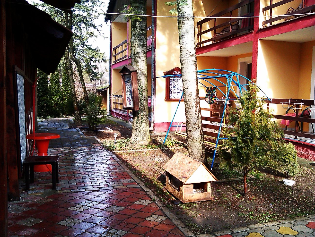 Ima 18 soba. Sve su sobe sa kupatilom i predsobljem. Dvokrevetne i trokrevetne sobe. Moguće je ubaciti u sobu krevet/krevetac/krevet na sprat ako bude potrebe. Sobe izgledaju kao aparatmani samo nemaju kuhinju. Svaka ima poseban ulaz. Kada se uđe, ulazi se u predsoblje, sa leve/desne strane je kupatilo a napred se ulazi u sobu. U sobama ima tv, bar u ove dve što smo videli, a da li radi, ne znam i aklimatizovane su.