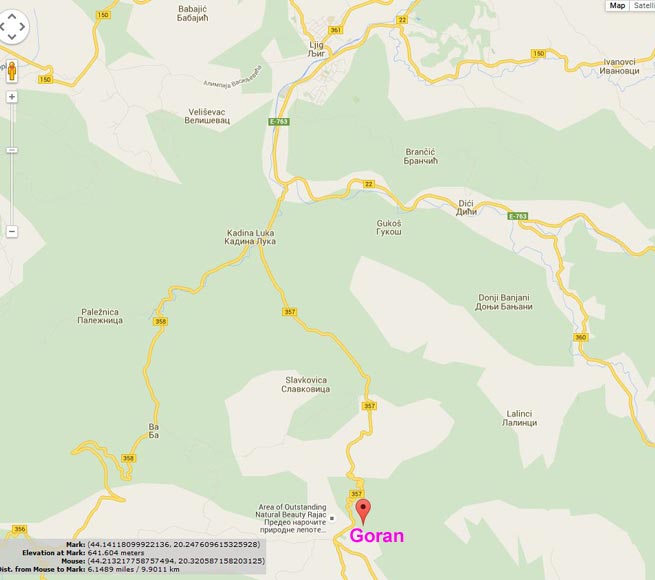 No bez obzira, kada se dolazi iz pravca Ljiga, prođe se pored planinarskog doma, koji je sa leve strane, i ubrzo zatim je tabla gde piše "~kod Gorana itd." i pokazuje na skretanje ulevo. Tim puteljkom se samo tamo može stići. To se na satelitskom snimku, koji sam postavio, dobro vidi.