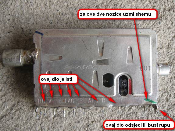Potrebna mi je zamena za ovaj tjuner (slika je u prilogu), znaci potrebna mi je zamena koji drugi tuner mogu tu staviti, sa prednje strane ima RF ulaz i to je ok ali nije mi jasno zasto na drugom kraju ima cinc izlaz cemu to sluzi, s obzirom da sa donje strane ima sve sto je potrebno tuneru BU, VT, BH, BL, AGC, AFT, B, IF, molim za pomoc?