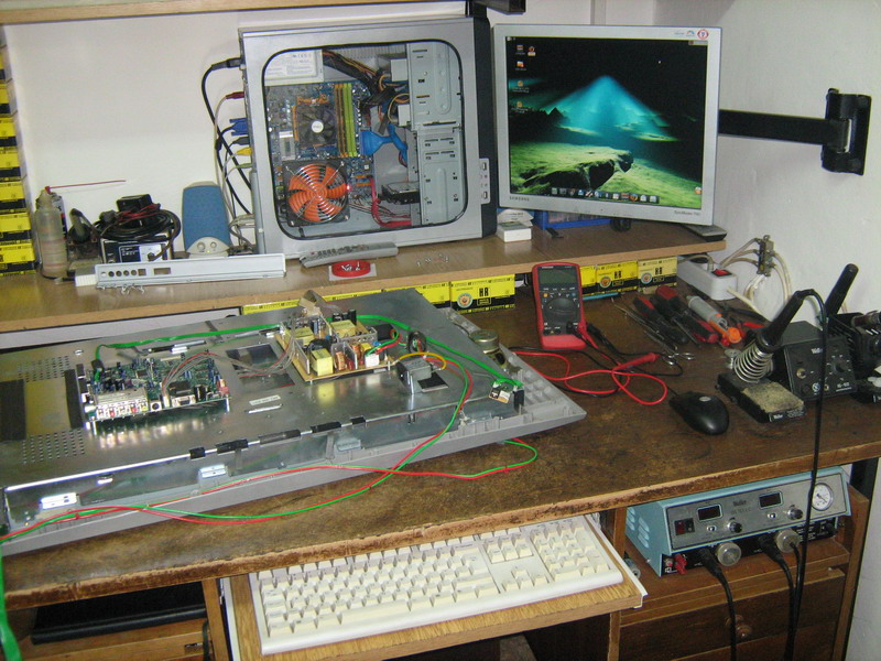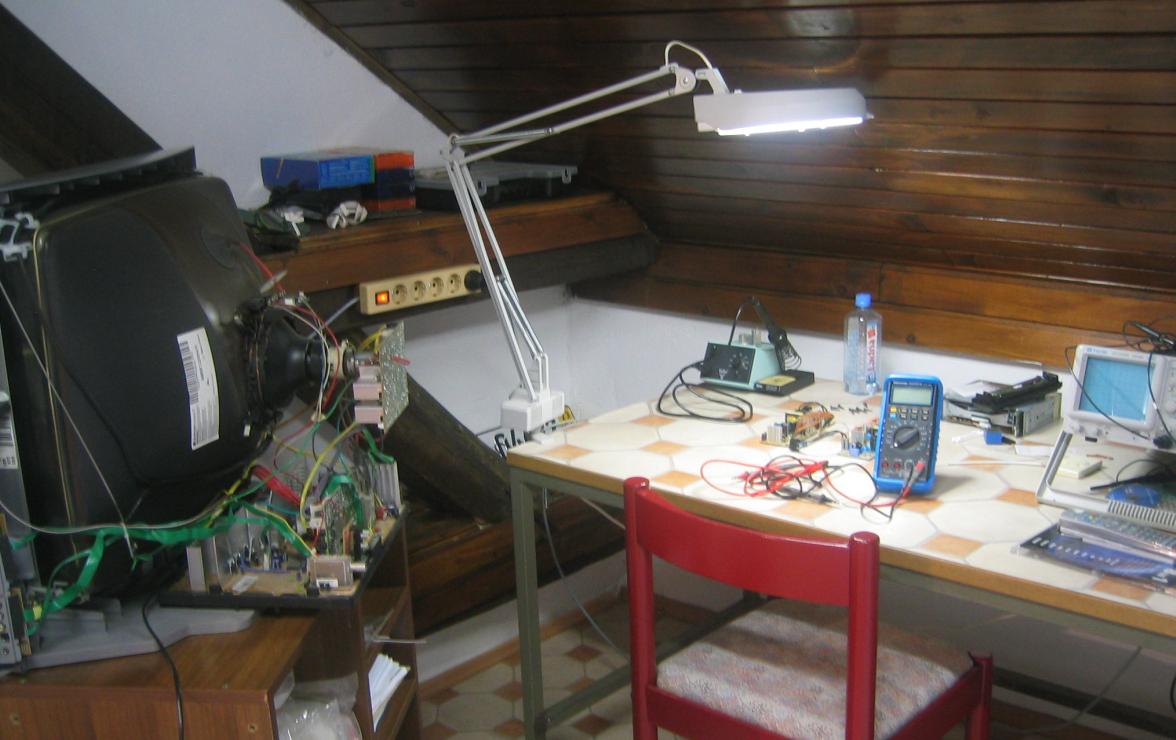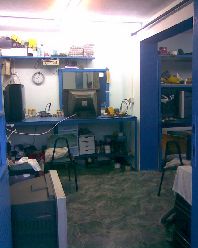 Evo kako izgleda moj brlog-bunjak gde provodim svoje najlepse dane. zanimljiva je slika jer samo sto je explodirao FBT na Prosonicu (PS.nemojte nikom da kazete) ajos je zanimljivije sto sam osetio da se vazduh jonizuje-bilo mi nesto sumnjivo pa sam prineo njusku trafou da pomirisem a onda.....
