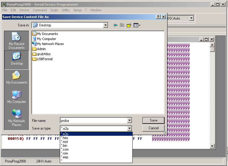 Uglavnom svi programi imaju mogucnost da snime sadrzaj eeproma u formatu koji zelis.