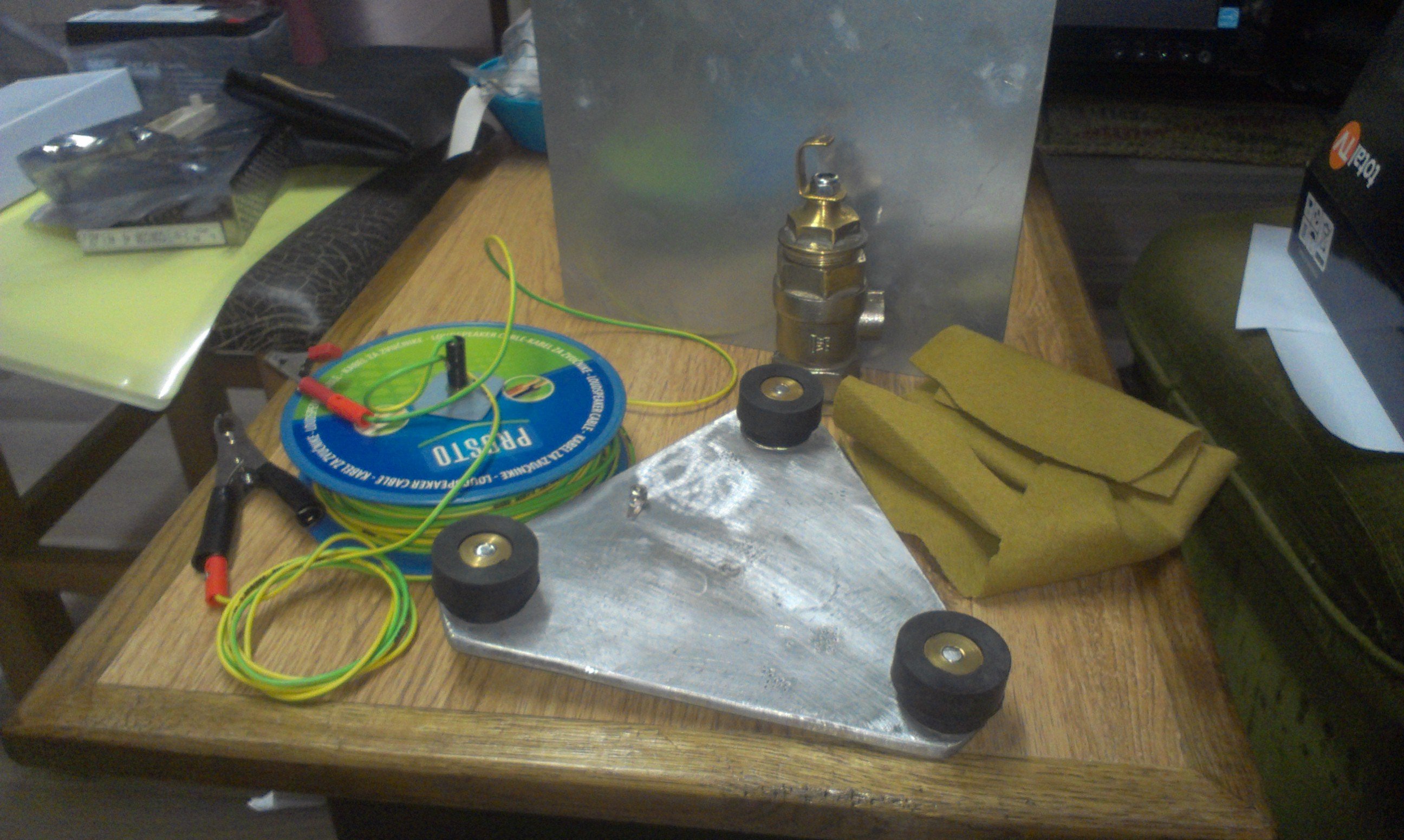 Evo nekih ih korisnih adaptera koji olakšavaju merenja kod električnih instalacija.Ujedno je i provera čvrstine kontakata na utičnicama.Na izradu (pre nekoliko godina) me je naterala cena firmiranih adaptera (cena 55 evra, slika 1, osnova za izradu ostalih), banana priključci (tad nije bilo u ponudi kineskih bišebojnih) su farbani bojom za plastiku i montirani su na plastiku.Slika 3 su pomagala kod merenja antistatik podova, kad slikah pribor nije zgoreg i to jer je izrada u sopstvenoj režiji prema propisanoj specifikaciji.