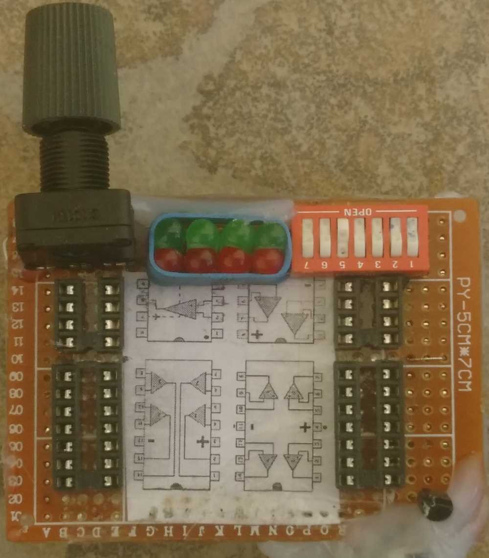 Preklopnikom se izabere jedan referentni napon, potom se vrti potenciometar dok se nenađe tačka kada pali i gasi ledovke. Tačno se vidi stanje svakog izlaza koji moraju isto da se pale i gase......