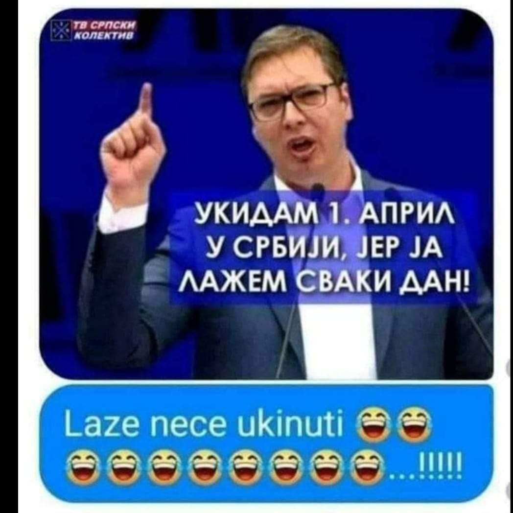 Nas voljeni predcednik danas javno izjavi da će groblja biti mala da nas sve prime od ove ''grozne zaraze''..to nije širenje panike?, naravno nije ni istina, i on ne odgovara za to. Dr. Jovana Stojković izjavi da narodu treba dati slobodan izbor da li hoće ili neće da primi vakcinu, što j zakonsko i Ustavno pravo, i onda je uhapse, nalepe etiketu antivaksera? Mi ne smemo da se okupljamo, treba da prijavimo žurke, a na farmi i zadrugi divljaju žurke i država ih ne hapsi? I takvih primera koliko hoćeš...i to je demokratija??