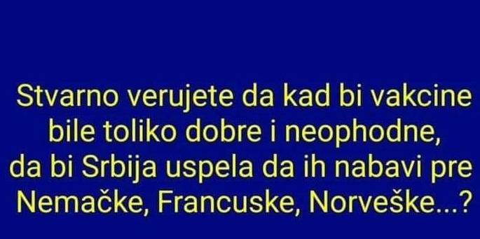 Nisam protiv vakcinacije , ali prvorenom vakcinom za koju postoje dokazi da deluje i ima prihvatljive nus-pojave.