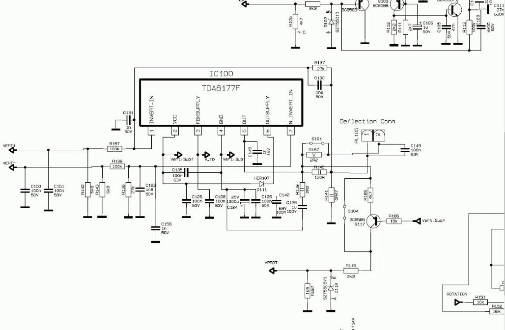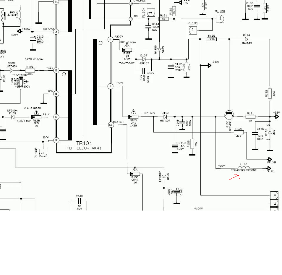 Nisam nikada imao da je ta prigušnica crkla. Po šemi se vidi da preko nje ide napajanje stepena za vertikalno skretanje. Nađi neđe original i ugradi.