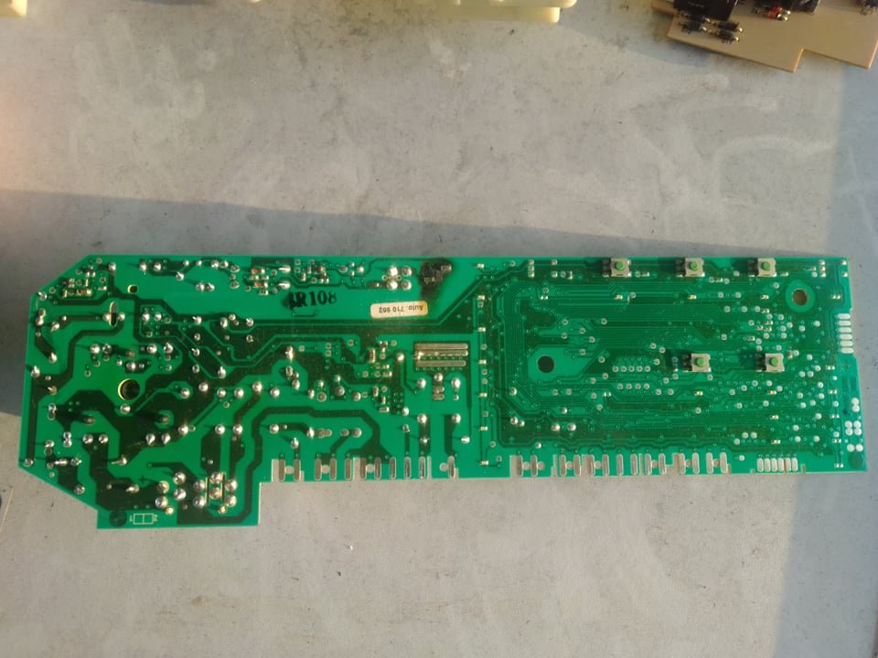 opis kvara: u toku susenja pukao kais otkinuo zice od kondenzator i prespojila zica na masu bubnja.tada je spalio otpornike na ploci na dzeku od senzora vlage.Masina radi ne prepoznaje ves i zavrsava program,potrebna mi je vrednos otpornika ,slika ploce