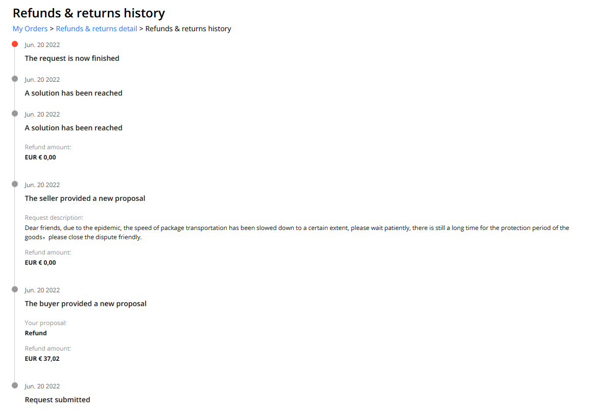 Kad roba nije stigla, pokreće se spor (dispute) i ne nasjeda se na lijepe riječi prodavca. U stanju su da obećavaju brda i doline samo da se spor povuče, Ako se to uradi, nema ga više. Možeš se slikati. Najpametnija stvar je tražiti novac nazad pa ko želi može ponovo kod istog prodavca da naruči. Ali prvo da vrati novac.