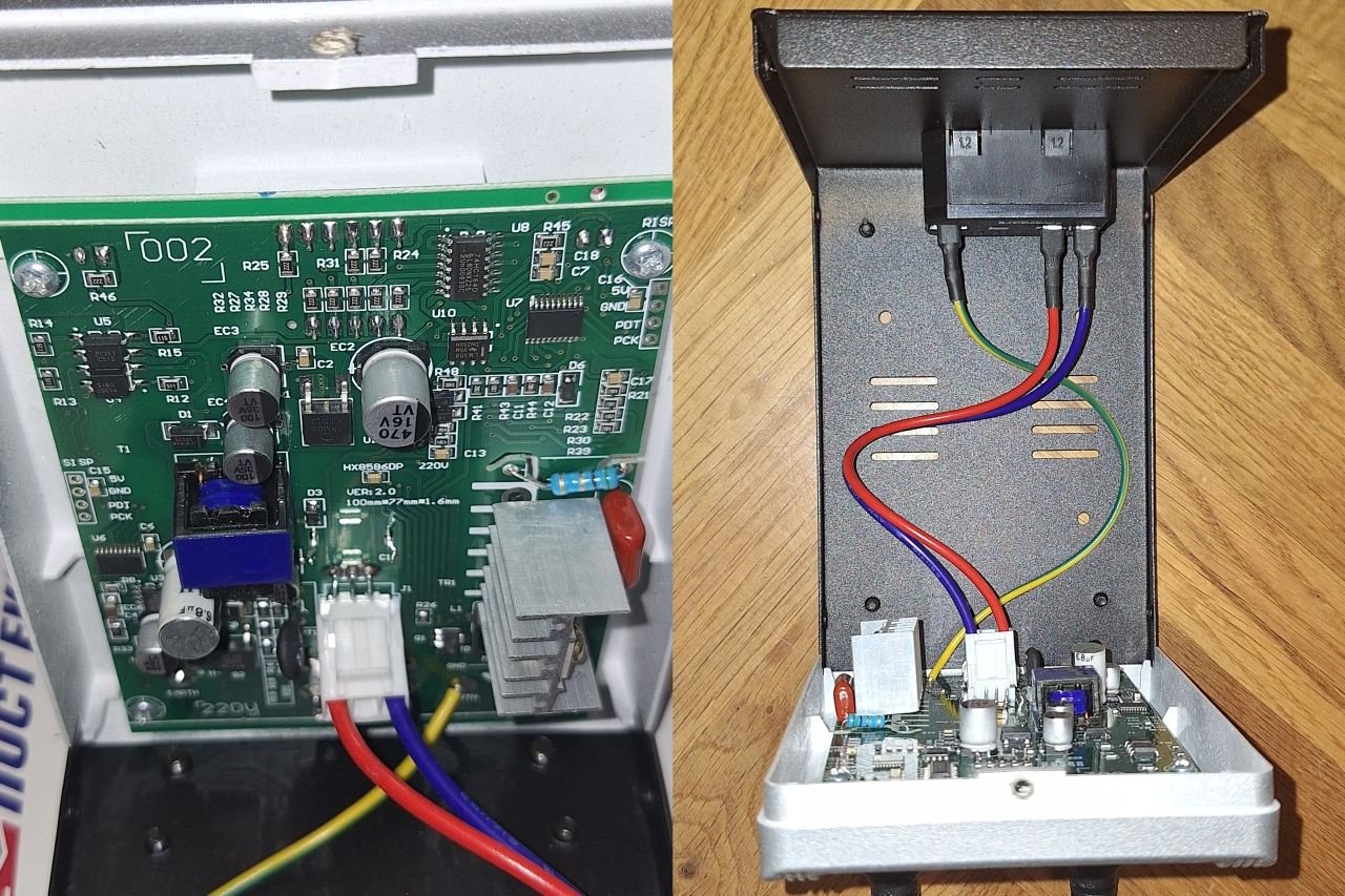Duvaljka i lemilica naravno rade na 220V i elektronika za kontrolu je smestena u bazu sa tim da bih rekao da lemilica nema uopste kontrolu temperature vec samo kontrolu preko triaka. Da se zagreje treba joj bas dosta vremena i sto se temperature tice pokazuje dosta vise od stvarnog stanja.