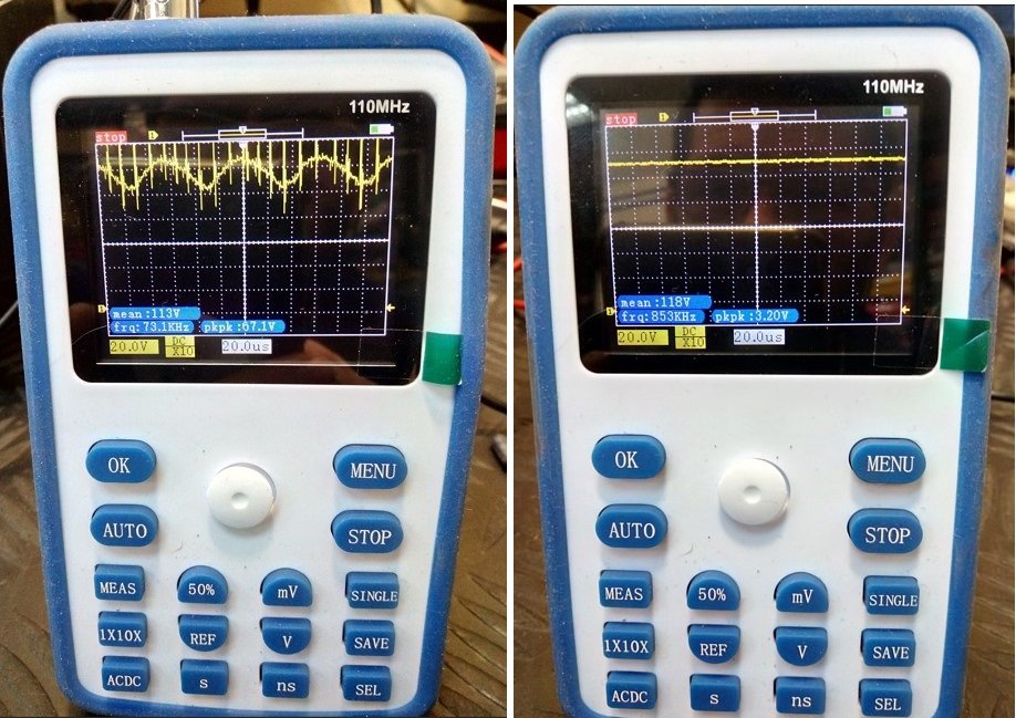 Umjesto voltmetra i ESR metra uzeo sam osciloskop.