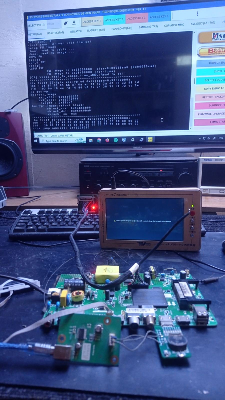 Nema potrebe ukljucivati npr TV u struju, odvrtati gomilu srafova, meriti napone, ispitivati pojedinacno pinove HDMI-a, isprobavati softver i menjati dampove.