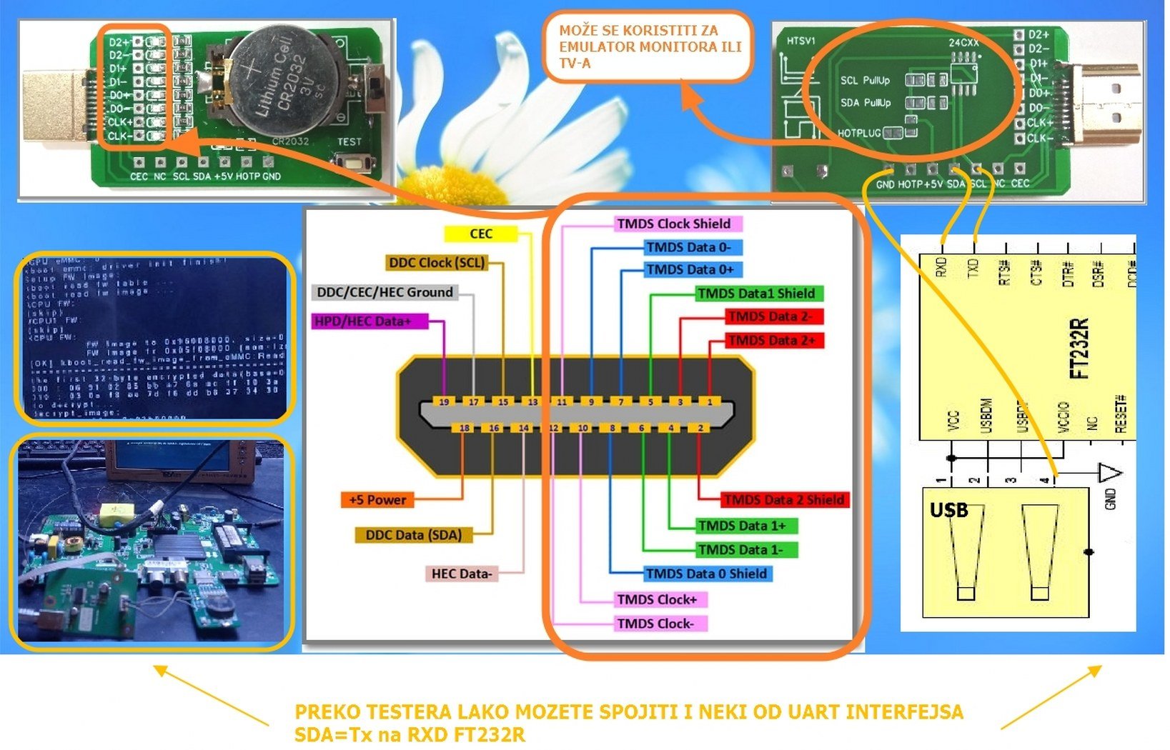 bilo bi zanimljivo da na tester dodas usb prikljucak i uart konekciju..u medjuvremenu sam isprobao i funkcionise Rx=SCL a Tx=SDA i vidi cuda radi...bravo majstore