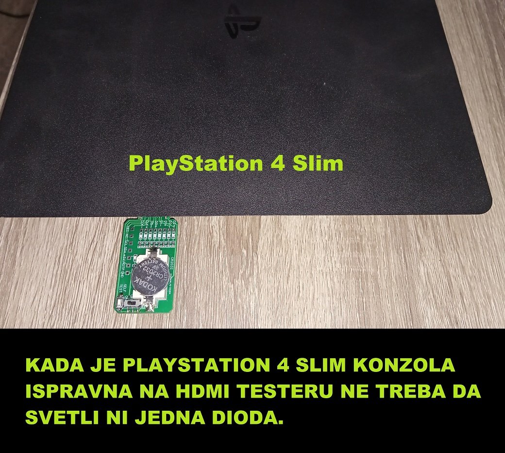 Što se tiče PlayStation 4 konzola tu HDMI tester ne pokazuje da svetli ni jedna dioda. Evo primera za potpuno ispravne slim i pro playstation 4 konzole mada se i fat konzola isto ponaša. Čim svetli neka od dioda to ne valja i te konzole ne rade.