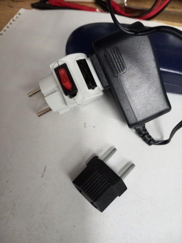Kako generator signala nema klasični prekidač za paljenje i gašenje uređaja a kako je njegovo napajanje i napajanje osciloskopa postavljeno na odvojni trafo, umesto euro tip adaptera iskorišćen uje kineski razvodnik gde je ugrađen prekidač te je sa napajanjem jedna celina.