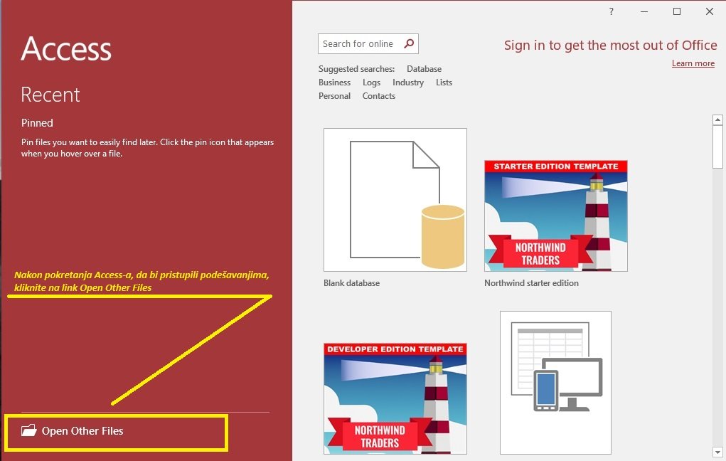 Uputstvo za podešavanje MS Access-a