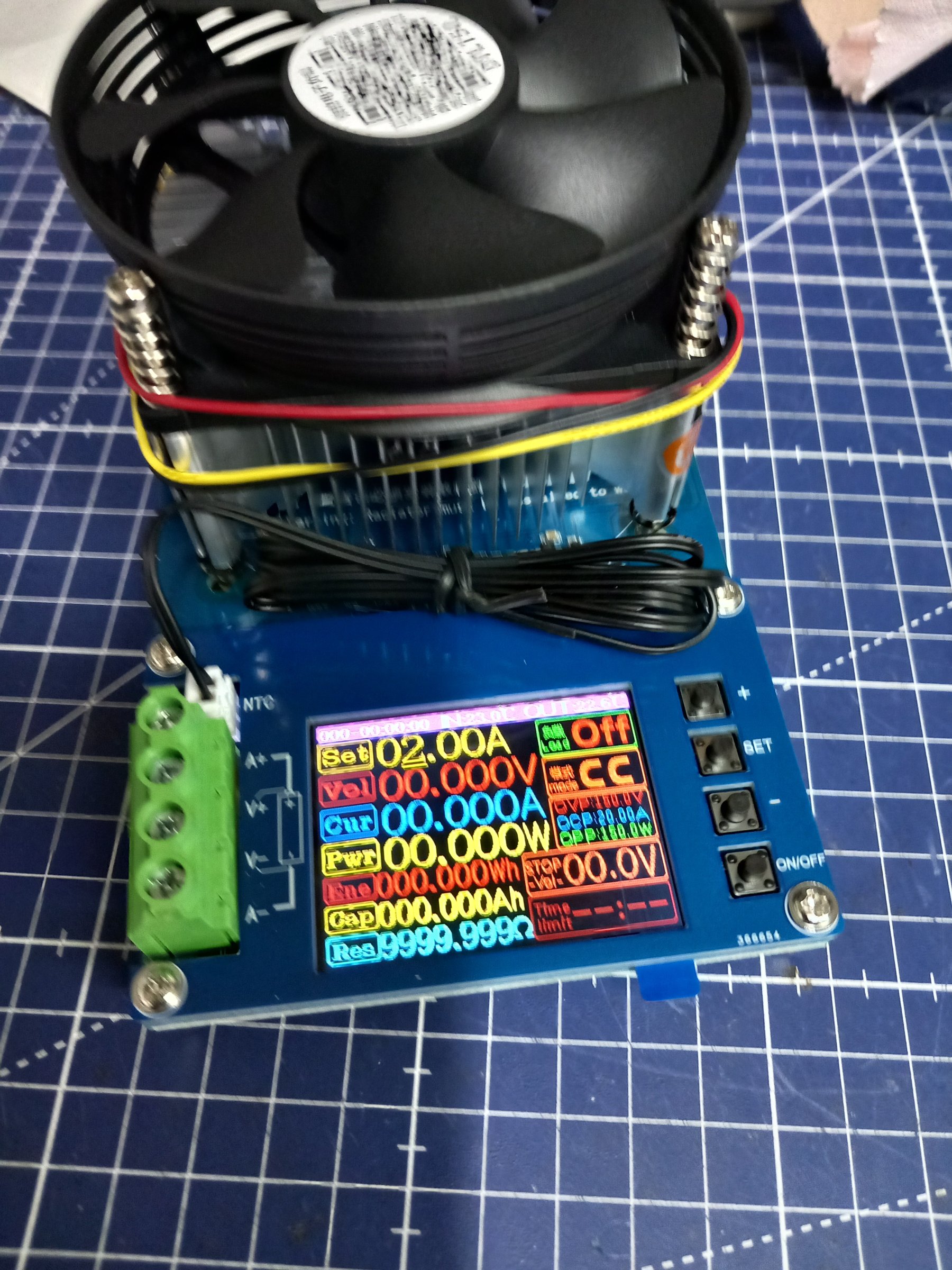 Testirao sam uređaj po pitanju tačnosti te sam dobijenim rezultatom zadovoljan (ulaskom u podešavanja se mogu kalibrisati i napon i struja) te mi je ostalo da malo skratim testne kablove.Na opterećenju od 4A pali se ventilator.