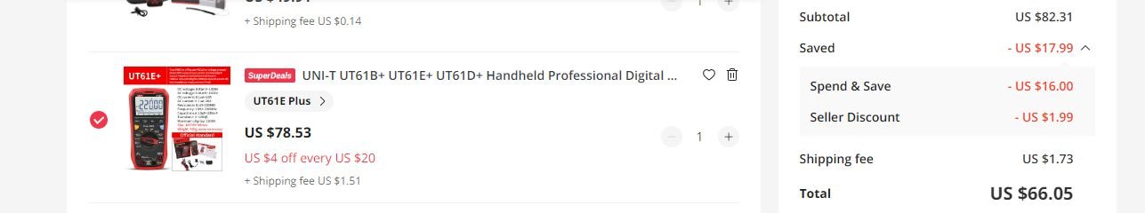 Recimo ako se uzme UT61E+ + torbica izadje 66usd...