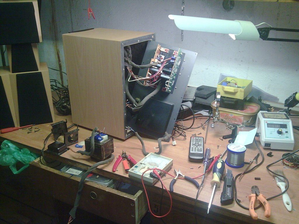 To je glavni sto za popravku televizora. Tu se najviše radi.