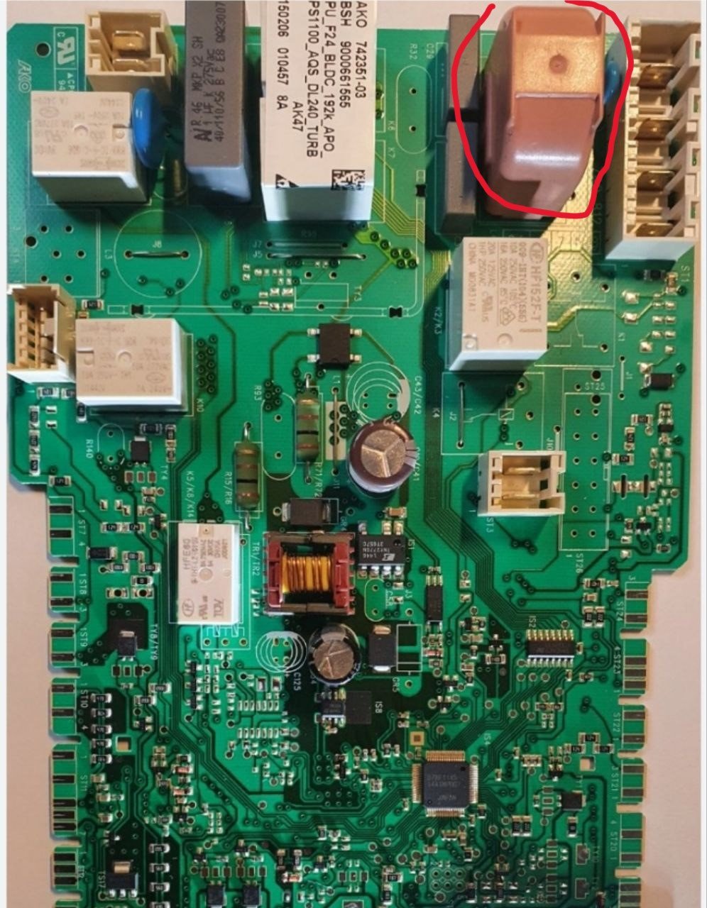 Pozdrav kolege. Veš mašina je bila mrtva. Ustanovio sam da je pregorila filterska zavojnica (DM choke) na mrežnom dijelu (zaokruženo na slici). Zamijenio sam je i