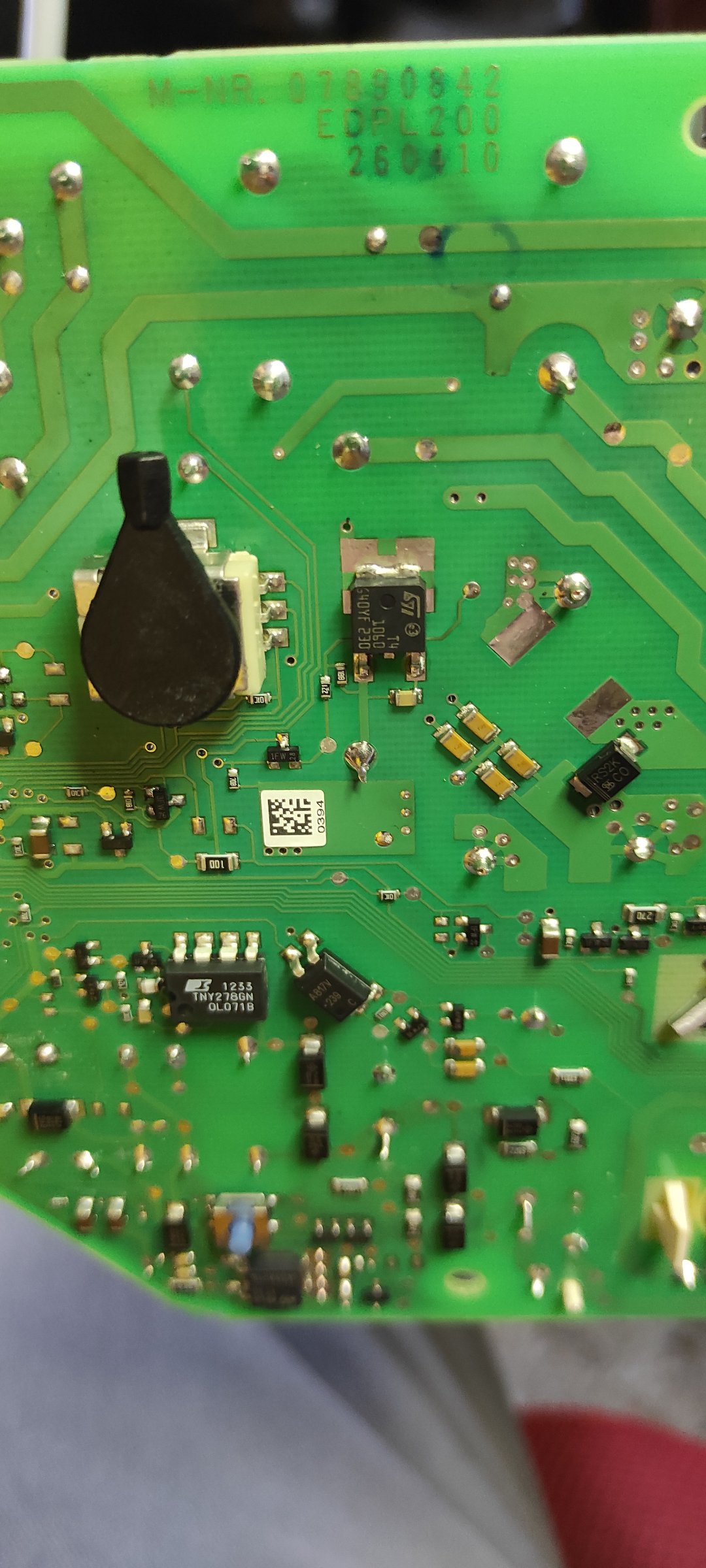 Mašina je došla sa greškom da ne dozvoljava start jer vrata nisu zatvorena a jesu. Pregledom ploče uoči sam jednu smd komponentu koja je izgorela i samim tim nestala je i oznaka. Potrebna mi je pomoć ako neko od kolega ima na stanju ovakvu ploču da pošalje oznaku. U prilogu je slika koja mi tačno komponenta treba?