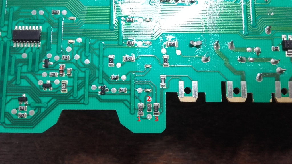 Doneli mi na servis elektroniku iz ves masine Midea model MG52-6508, na koje se ne vide oznake na otpore prikazane na slici I oznacene sa crvene brojeve 1,2 i 3.Zamolio bih neko ako ima vrednosti ove otpornike da ih napise.Oznake na modulu su: