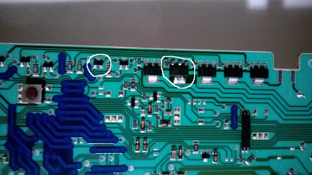 Imam problem sa veš mašinom gorenje WA61061 oznaka elektronske ploče je AKO 717336-05 PRG 7200-03 PRG FLASH 712714-06 TYPE PG1/1/P gorenje 178 660.Desilo se da je na konektoru pumpe za izbcivanje vode nastao kratak spoj i u tom trenutku je crkla elektronika tj.koliko sam uocio pukli su dva trijaka i 1 smd otpornik preko kojih se aktivira pumpa.Ja sam te elemente izmenjao ali ploca ne daje nikakve znake zivota pretpostavljam da je spoj otisao dalje u plocu.Zanima me koje je jos elemente mogla ta struja da osteti?