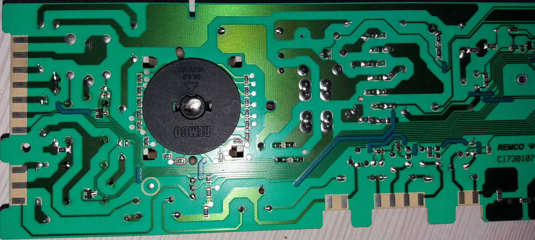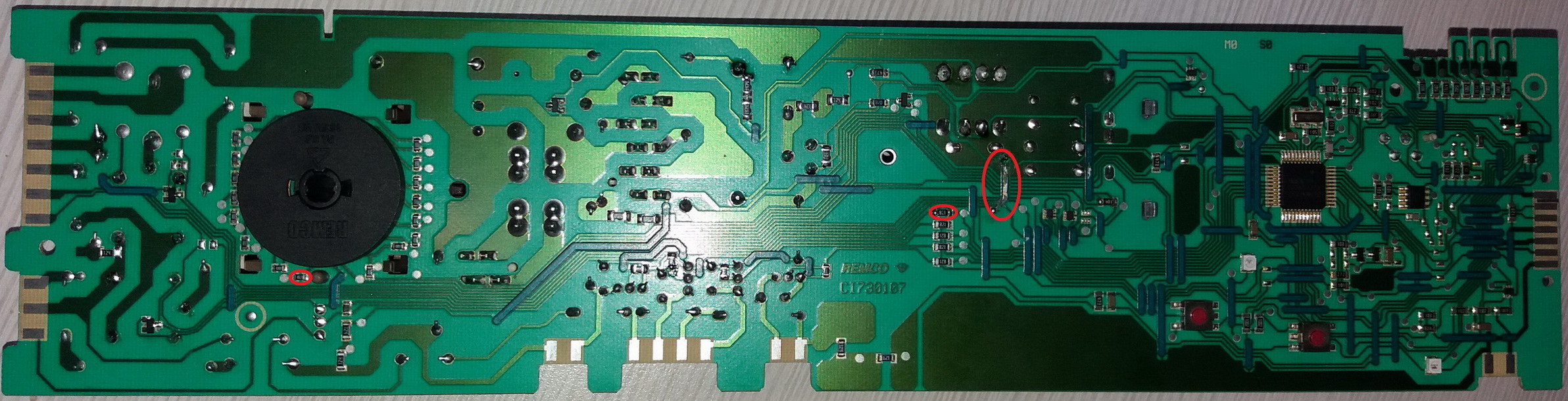 Imam sledeci problem sa ovom ves masinom, najpre se culo brujanje iz releja na modulu na bilo kom programu da se okrene i dimljenje iz bravice ali signalna lampica na ploci nije svetlela, zamenio sam bravicu ali se i dalje culo brujanje, pregledao sam modul i na njemu ustanovio da je pukao jedan trijak Z0607 i zameni sam ga sa Z0107, kao i SMD otpornik 821 i 1001 i na jednom mesto koje sam takodje obelezio na slikama sam primetio da je izgoreo vod i prespojio sam ga. Sada ne bruje vise releji ali modul i dalje ne daje nikakve znake kad se ukljuci na bilo koji program niti svetli lampica. Jel zna neko sta bi moglo jos da bude problem? Unapred hvala.