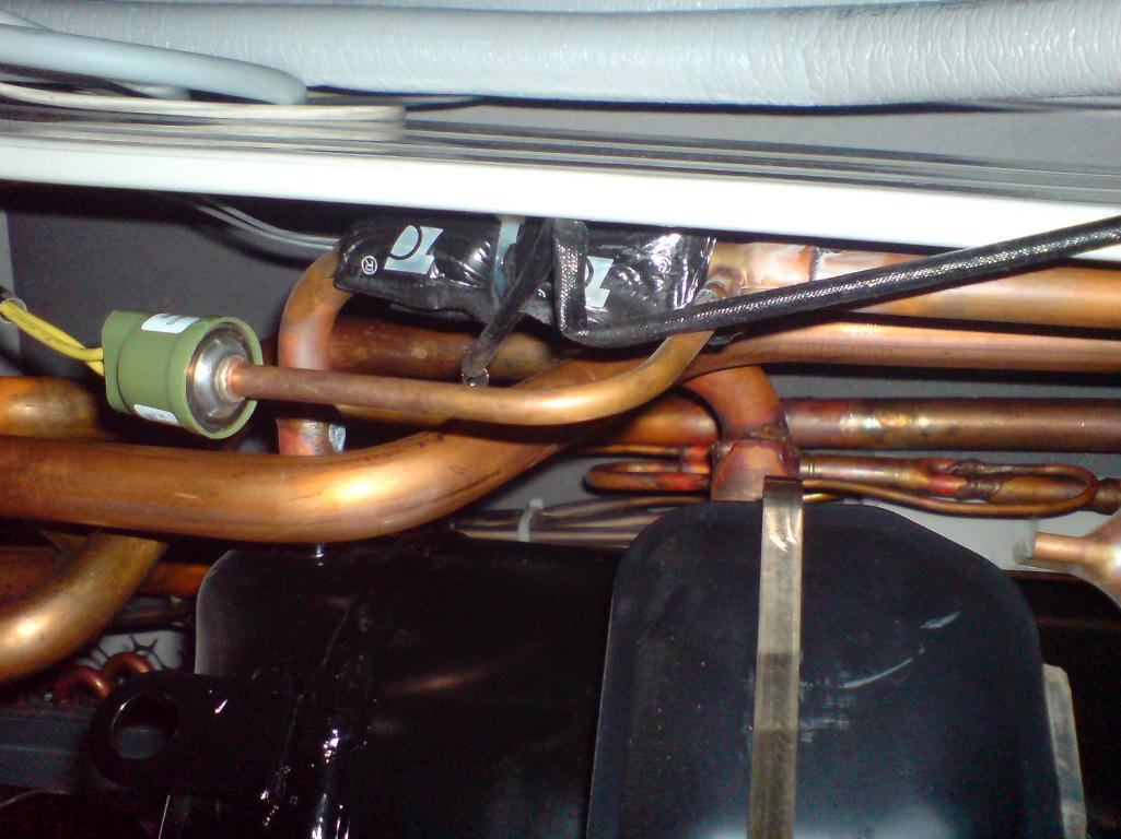 Pronašao sam sonde, jedna je uključena na pločicu a druga u red vezana sa još jednom sondom i nekim senzorom pritiska (po mom mišljenju). Obe se jedna do druge nalaze na donjem delu kondenzatora. Sa ove koja je vezana u red sa gore spomenutim senzorom i sondom, kontakti idu prema unutrašnjoj jedinici. Pri montaži neki Kinez je zavrnuo šaraf kroz kabel od te sonde,i prekinuo ga. To sam popravio i izmerio otpor koji je bio 13koma na jednoj i 14koma na drugoj sondi.