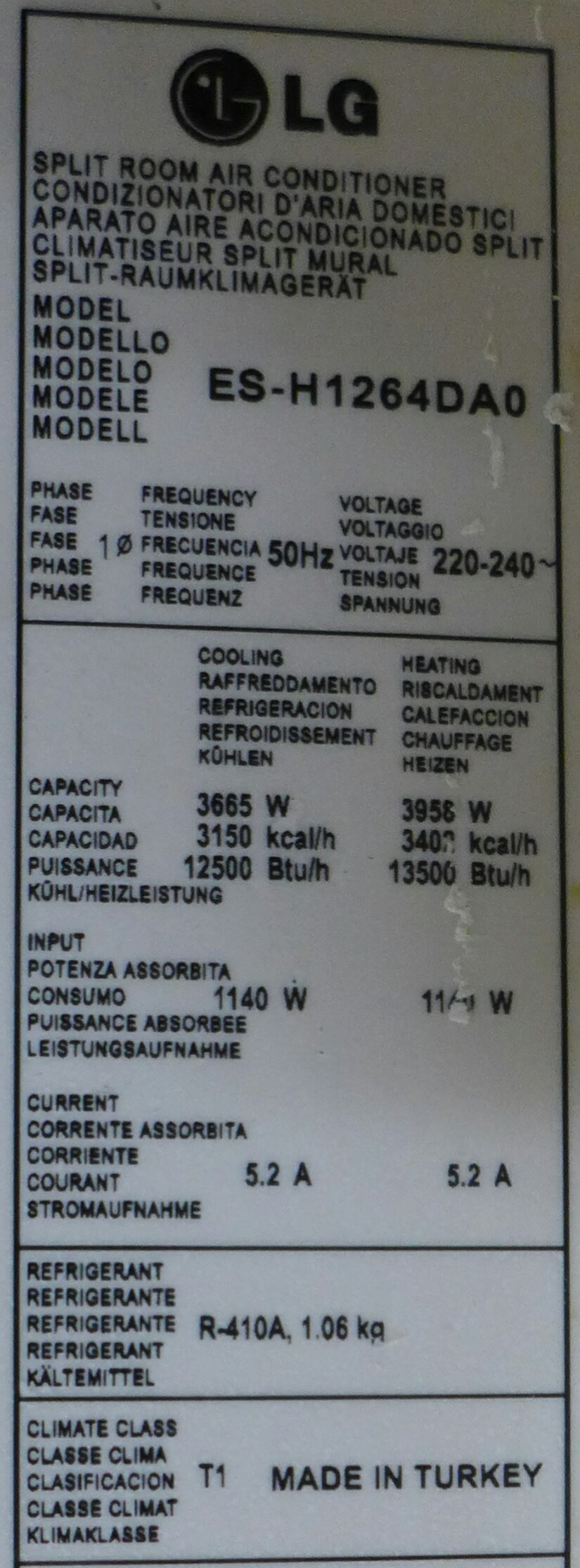 Izvinjavam se zbog toga što nisam postavio fotografiju nalepnice koja se nalazi na klimi, ali nisam u mogućnosti da fotografišem (probali su da mi pošalju, ali je mnogo mutno).