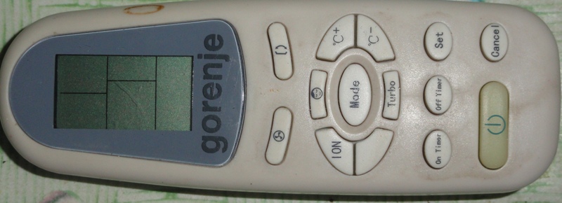 Edit:Si ti siguran da je to daljinski od te klime?Meni lici na daljinski od starijih modela Gorenje,a ustvari su to bile klime(Elinlux,tj.Vestel).Probaj univerzalni daljinski,ili neki od Midee,mada i tamo ima dve frekvencije na koje rade.Nisam siguran da je to daljinski od te klime,tj.ploce..