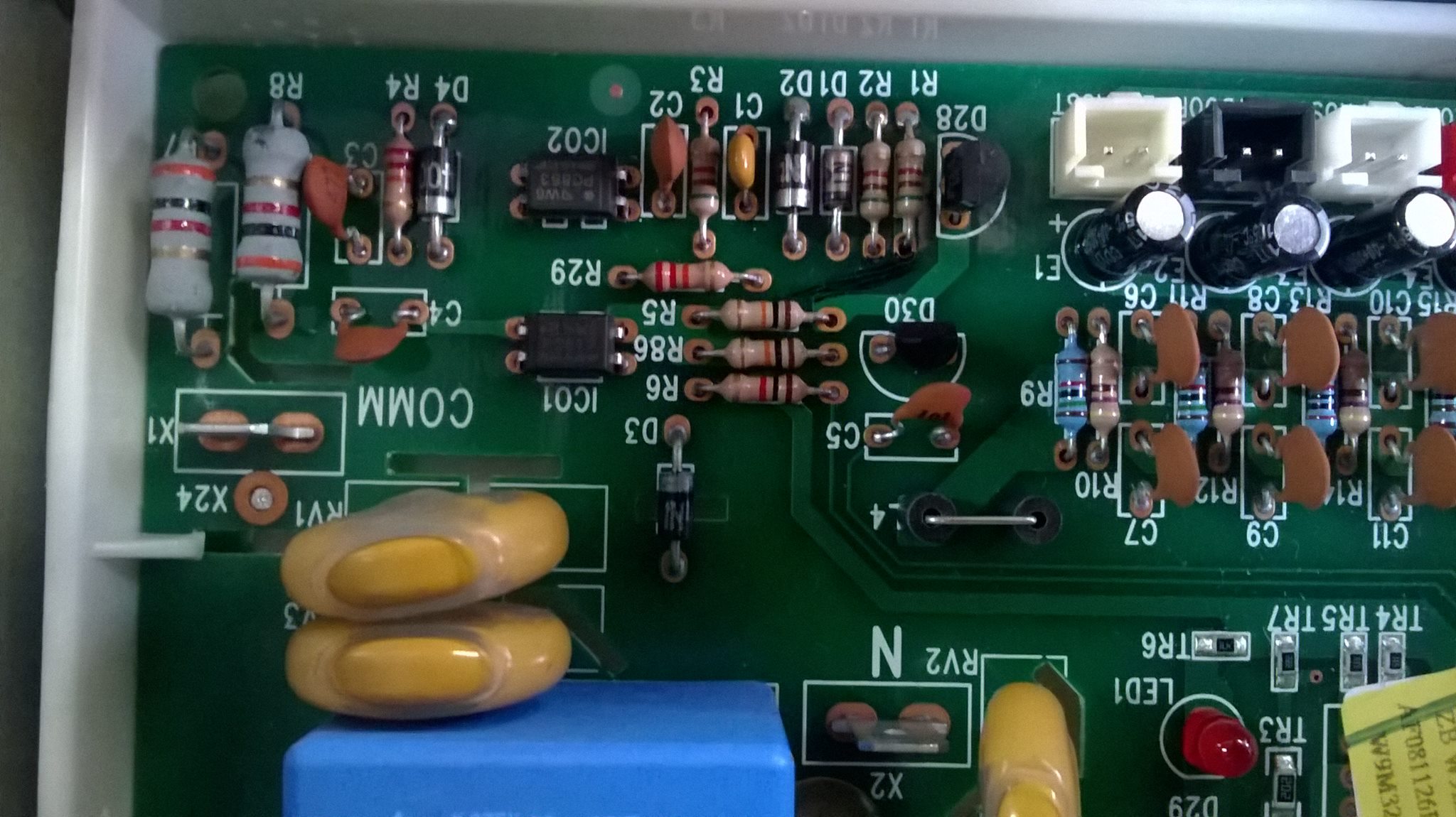 E6 ti je greška u komunikaciji između unutrašnje i vanjske jedinice.Vrednost otpornika R6 i da saznas, pitanje je da li je samo otpornik(more bit , al ne mora da znaci) .Treba proveriti ta dva optokaplera IC01 i IC02 i ta dva( D28 i D30) da li tranzistora, ili stabilizatora napona....! Lako se moze desiti da je kvar i u unutrasnjoj jedinici( ako nisi proverio proveri).